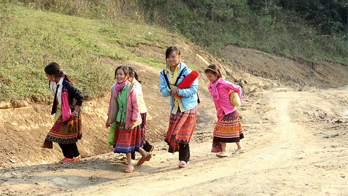 El tramo fangoso de l5 kilómetros desde la carretera nacional hasta Hua Nhan es difícil de transitar. El único medio de transporte es la moto. Quien atraviesa una vez este camino se percata de las penalidades de los lugareños. La circulación es dificultosa, pero el trabajo agrícola resulta más duro aún. Los autóctonos tienen que abrir huecos para cultivar el maíz, su alimento principal, porque solo esta planta puede crecer en laderas de piedras verticales. Algunas familias crían cabras, cerdos y aves para autoabastecerse de víveres cuando celebran algún acontecimiento. La vida transcurre con obstáculos, por eso los Mong no prestan mucha atención al estudio de sus hijos. Los mayores dedican tiempo para ganarse la vida y los niños crecen como plantas silvestres en bosques. Cuando sean grandes, seguirán a sus padres al campo para labrar sin prestar atención al aprendizaje. Giang A Lenh, secretario del Comité del Partido de la comarca de Hua Nhan, dijo:“Antes los Mong no permitían a sus hijas estudiar. Ahora, tanto los hijos como las hijas pueden llegar a la escuela. Según su concepción, si estudian, será difícil para las mujeres buscar empleo y tampoco sabrán trabajar en la agricultura.”