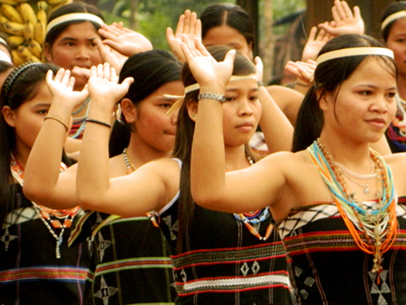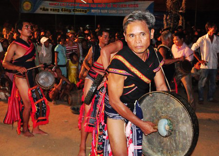 Una fiesta de la minoría étnica Co Tu en la que protagonizan los gongs y batintines