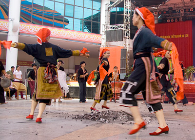 En la fiesta de baile, los Dao entonan canciones sobre los grandes méritos de sus antecesores, la historia del linaje, el cultivo de plantas, el tejido de telas y la caza. El “Tet nhay” lleva un carácter comunitario e individual a la vez, porque es preparado y presentado por cada miembro de la familia y estirpe con la asistencia de numerosas personas de dentro y fuera del poblado. Entre las risas y sonidos apasionados de los batintines, los jóvenes “protegidos” por sus antepasados, bailan y se lanzan a las llamas sin sufrir heridas. Ban Phuc Suong, de 7l años de edad, un conocedor de la cultura de la etnia Dao en Tan Phuong, dejo saber: “Según el concepto, cada 2 o 4 años se debe celebrar un “Tet nhay”. Si no lo hace, los servidores a los antepasados desaparecerán y estos no serán capaces de luchar contra los desastres naturales, incendios y durante el año, los trabajos de la familia sufrirán pérdidas y sus miembros se enfermarán. Por ello, esta práctica se transmite de generación en generación.”