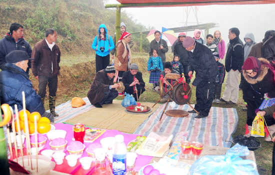 Al finalizar la fiesta de salir al campo los ancianos aldeanos efectúan el acto de culto para bajar el bambú con el círculo de papel. Esta celebración lleva una profunda significación y refleja el orgullo por las identidades nacionales y la vida cultural y espiritual de los compatriotas Giay.
