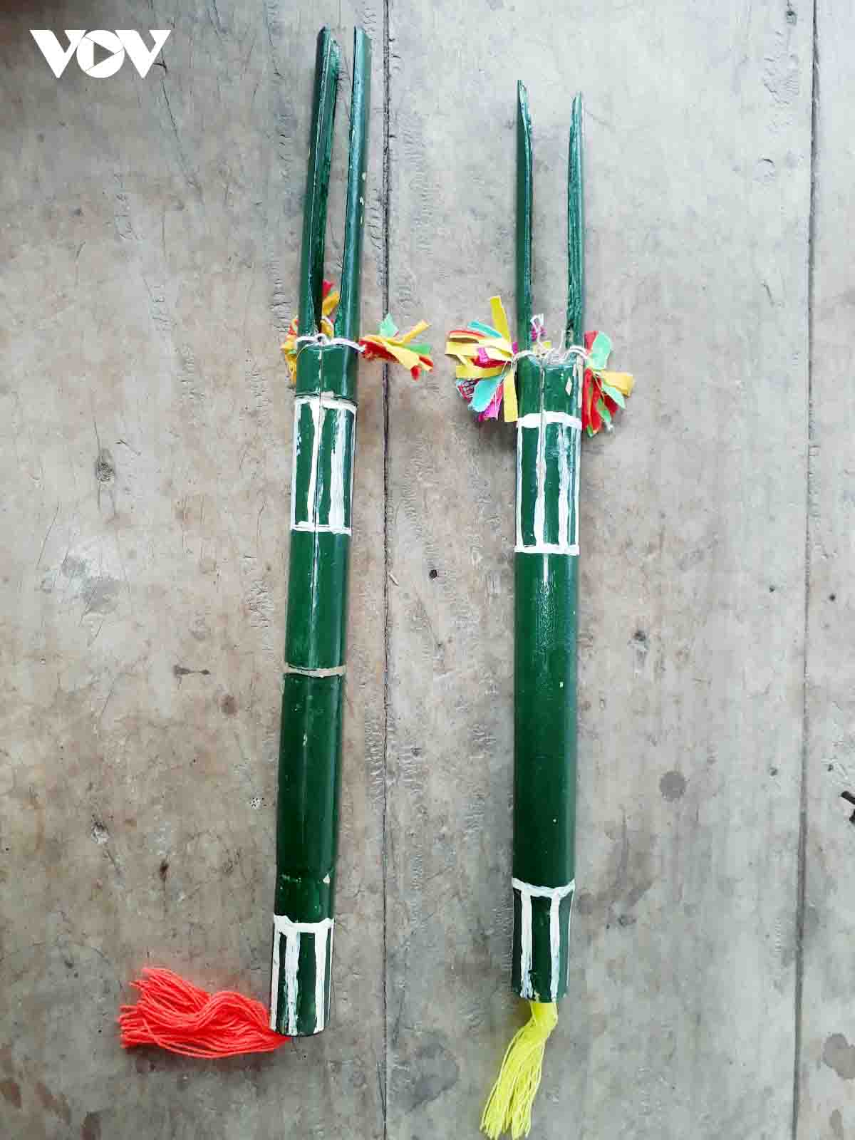 “Para hacer el ‘Hưn mạy”, la gente irá al bosque para cortar viejos árboles de bambú, enderezarlos y llevarlos a casa para secarlos en el horno hasta que su color se vuelva dorado. Después, corta cada pieza de 40 a 60 centímetros de largo. Un extremo se divide en 2 púas, mientras el tubo está perforado con 2 orificios para garantizar un sonido resonante”, informó la señora.