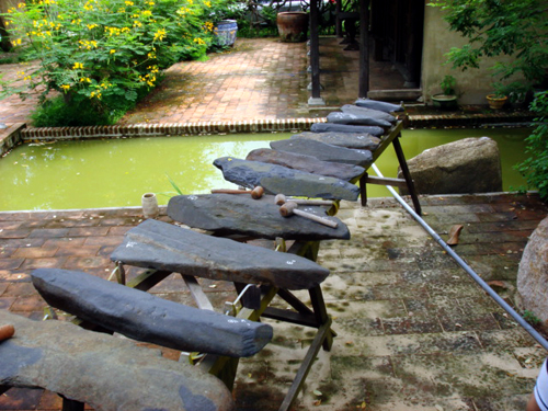 Así, las piedras toscas e insensibles fueron labradas y convertidas por los Raglai en litófonos cuyos sonidos repercuten en los bosques y montañas hasta hoy en día.