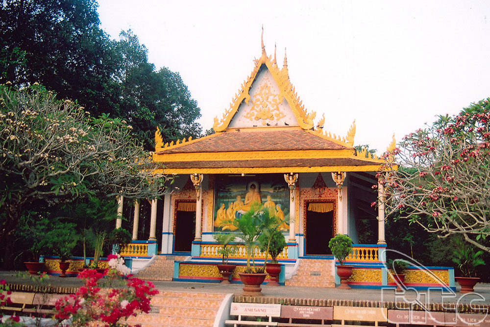 “El santuario principal es el espacio más importante de una pagoda jemer. Como seguidores del budismo Nam Tong, o Thevada, los jemeres colocan solamente la estatua del Buda Gautama en el santuario principal para su veneración, mientras que en las construcciones budistas de la mayoría étnica Kinh, además de adorar al Buda, rinden tributos a los bodhisattvas y arhats.”