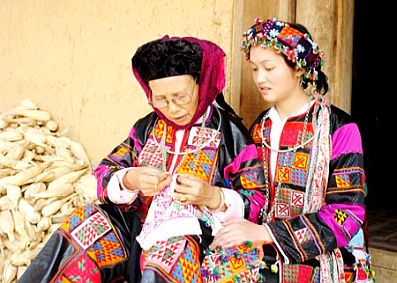 Desde su infancia, las mujeres de este grupo étnico reciben instrucciones de costura y bordado de parte de sus madres y abuelas para poder confeccionar sus propias ropas. Según la tradición, una mujer Lo Lo, al casarse, debe llevar a la casa de su marido al menos un conjunto de ropa hecho por ella misma. La joven Lung Thi Huyen, residente de la misma aldea de Sang Pa A dice: “Mi madre me enseñó a cocer y bordar cuando tenía yo 12 años de edad. Me gusta mucho esta tradición de preservar los rasgos culturales de nuestro pueblo y deseo en el futuro transmitir mis conocimientos sobre la vestimenta tradicional de los Lo Lo para que no se pierda.”