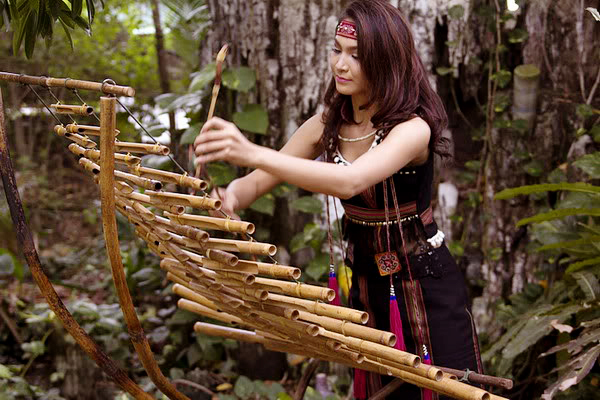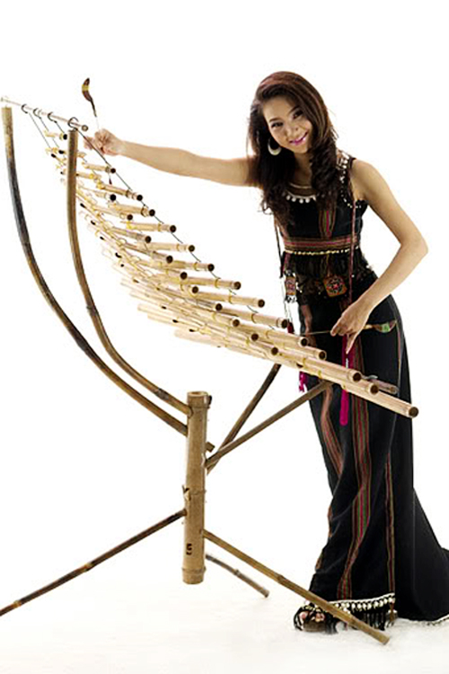 Una muchacha de la etnia Ba Na toca el instrumento musical T'Rưng