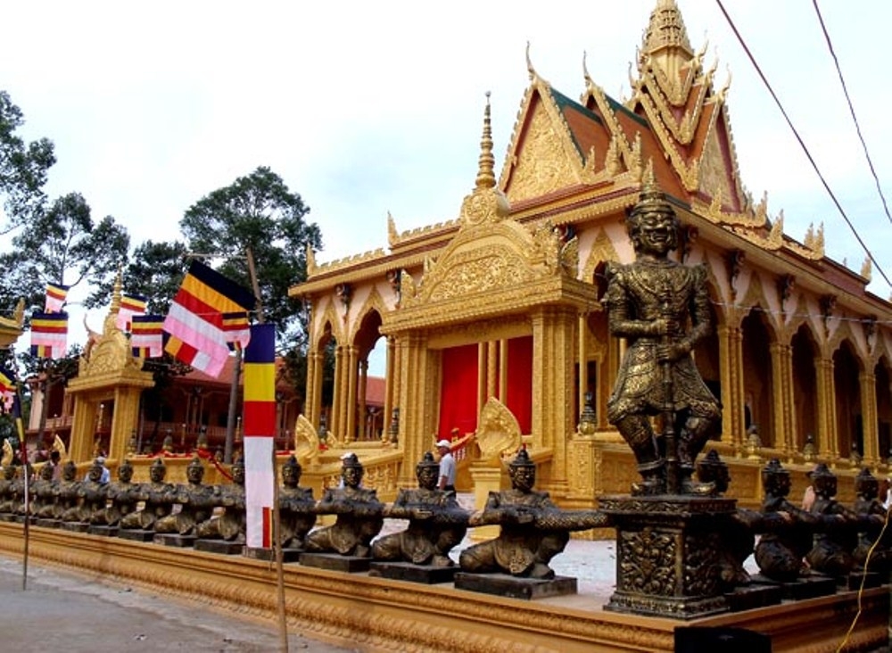 Los jemeres en el sur de Vietnam practican el budismo, y esta religión tiene una gran influencia en su arquitectura y sus artes, con las pagodas y torres muy originales. Crecen imbuidos de las enseñanzas y doctrinas budistas en estos santuarios típicos. También reciben conocimientos de las clases organizadas en dichas pagodas. El bonzo superior Giang Thanh, de la pagoda Chroi Ton Sa, en la comuna de Kim Son, del distrito de Tra Cu, provincia de Tra Vinh dio a conocer: “Además de enseñar a los niños y jóvenes jemeres a leer y escribir, los monjes les imparten clases sobre el comportamiento en la familia y en la sociedad, además de suministrarles los conocimientos básicos de la cultura y el arte de la nación, como las danzas, los cantos folclóricos y la vestimenta tradicional, para que comprendan más la identidad cultural de su pueblo y estén conscientes de su responsabilidad en la preservación de la misma.”