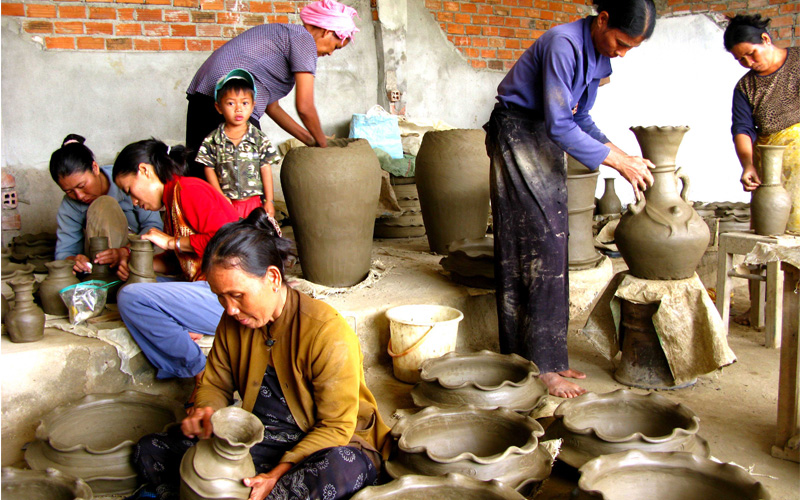 ![]() Mujeres jemeres en el sur eleborando productos de cerámica |
