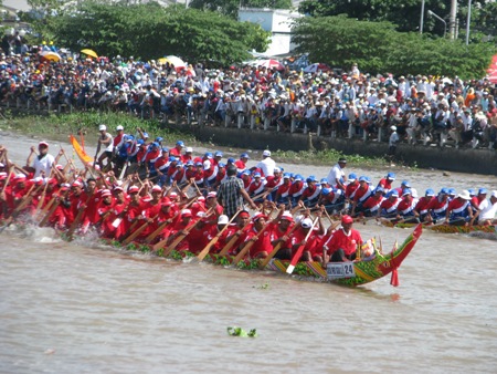 Sin duda, este es el festejo más esperado por los jemeres durante todo el año. En un corto tramo del río en el que se organiza la regata, se concentran cientos de miles de personas que vienen a disfrutarla y animar a los competidores, con golpes de tambor y ovaciones. No dejan de pasar esta buena oportunidad donde se aprecia la belleza, la fuerza y el talento de los remeros, además de la singularidad de la cultura autóctona.