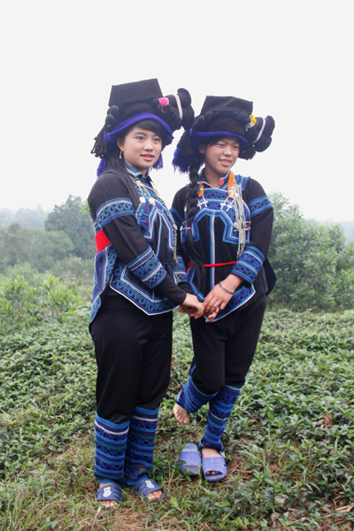 ![]() Dos muchachas Ha Nhi Den lucen el vestuario tradicional de su pueblo