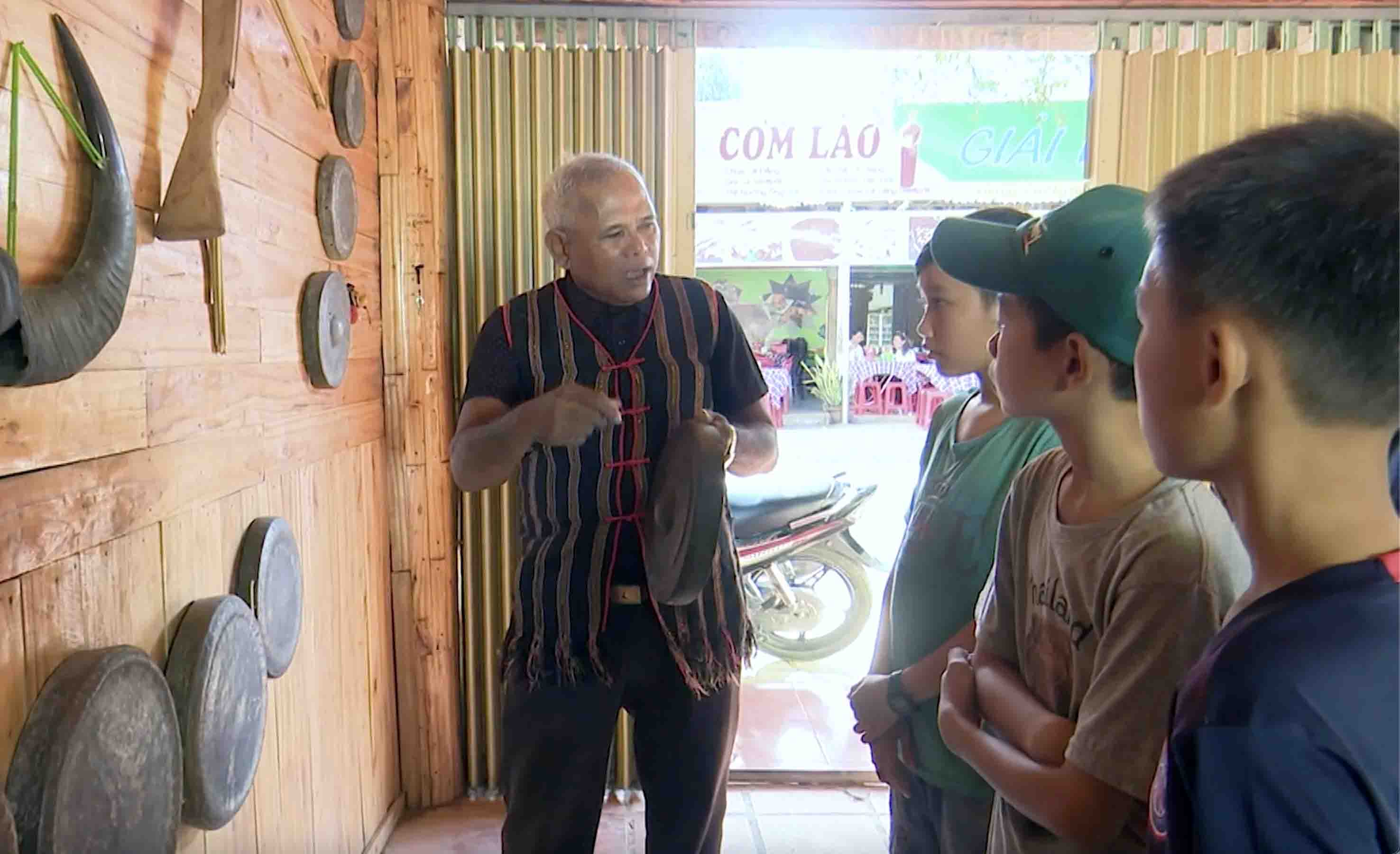 Un patriarca de la aldea presenta las costumbres de la etnia Ede a los jóvenes. (Foto: Bao Trung) |