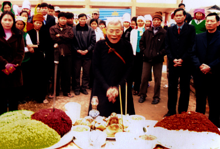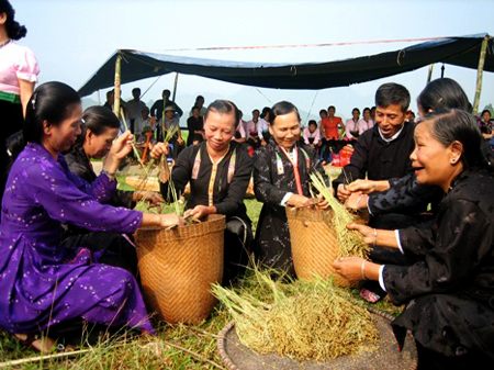En la concepción de la minoría étnica Thai, para lograr una buena cosecha, se recurre a la bendición de los genios y antepasados. Por eso, cuando están cercanos a la cosecha de arroz, los hogares realizan la ceremonia “cơm mới” para agradecer el apoyo de entidades sobrenaturales y predecesores difuntos. El aldeano Duong Van Lien dijo: “Cada hogar celebra el rito de modo rotativo. Mi familia lo hizo hace dos días con convites similares con carnes de pollo y otros alimentos suficientes para todos los invitados. En cuanto al rito, sacrificamos un gallo para venerar a los antepasados. Los Thai compran suficientes ofrendas como yuca, patatas, pomelos y caña, entre otros para invitar a los predecesores difuntos al convite”.