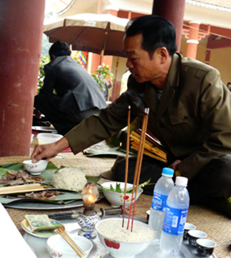En el rito “cơm mới” se cocina arroz nuevo, viejo y multicolor cuyo grano con