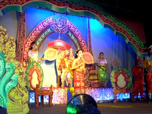 ![]() El baile escenificado Robam es un arte tradicional original del grupo étnico Jemer en el sur de Vietnam