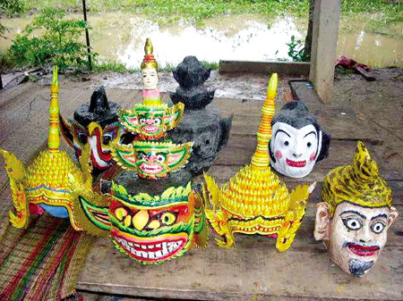 Las máscaras que se usan en el escenario son productos armoniosos entre la plástica y la estética, al asimilar características culturales indias. Se puede distinguir la de “chan”, que indica actos malévolos, la del rey mono Hanuman, el caballo Manoni, el ave divina Ko rich, el fénix, la tortuga y la serpiente, entre otras. Estas máscaras, además de ser variadas, son muy vivas y expresivas, y casi todas son personificadas, lo cual fascina a todos los espectadores.