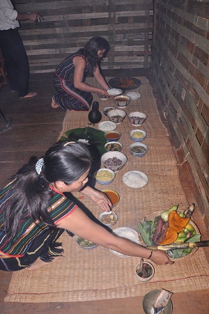 Para organizar la fiesta, sus seres queridos deben preparar arroz, carne, vino y ofrendas e invitan a los parientes y aldeanos. No solo proporcionan alimentos, varios meses antes de efectuar el protocolo de despedida, los miembros de la familia se concentran en tallar estatuas y construir un bonito nicho para el muerto. Por eso, las tumbas Ede tienen techos y paredes de madera o cuernos de búfalos. Los vivos también le reparten bienes materiales. En el acto de culto se hacen ofrendas, se interpretan músicas, se canta y se baila. El profesor Thinh continuó: “Los vivos distribuyen propiedades al muerto. Las vasijas de vino y cuévanos son perforados para enviárselas, ya que los Ede consideran que el infierno y la tierra son dos mundos opuestos, por eso ellos deben hacer esto.”