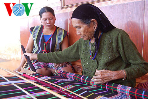 Para preservar y promover el tejido tradicional de la etnia M’nong, la comuna de Dak Ndrung organizó de 2012 a 2014 varios cursos para enseñarlo a las mujeres locales. Decenas de ellas, tras finalizar esas clases, adquirieron telares para elaborar en su tiempo de ocio productos destinados al uso familiar. Esto no solo satisface su afición, sino que además contribuye a mantener los rasgos culturales tradicionales de la etnia M’nong. ¿Qué camino tomarán para convertir los brocados caseros en un bien mercantil para que los tejedores puedan ganarse sustentos y preservar el legado de sus antepasados? Esta es una cuestión planteada tanto por el gobierno local como por la población de Dak Ndrung en el actual contexto de integración económica.