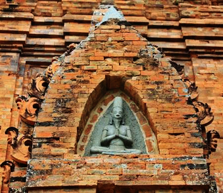 A lo largo de la parte central de Vietnam, desde el paso Ngang hasta la ciudad de Phan Thiet, se encuentran torres Cham de diferentes capas cuyas cúpulas se amplían en la forma de una flor. En el muro se han grabado delicadamente figuras de aves, plantas y bailarinas, entre otras reproducciones artísticas. Sin embargo, lo más destacado de la torre reside en el ladrillo especial para construir la obra. Los diseños se graban en cada ladrillo, una técnica jamás vista en el mundo. Ngo Van Doanh, del Instituto del Sudeste Asiático y miembro del Consejo Nacional de Cultura opinó que los Cham son “maestros del arte de construcción con ladrillos”. “Una obra normal de ladrillo dura como máximo un siglo. Sin embargo, los santuarios y las torres Cham tienen entre 700 y 800, e incluso más de mil años de edad. Al concentrarnos en los ladrillos, podemos percatarnos de que no existe ninguna juntura aunque usemos cuchillo para rajarlos. En estos muros se graban diseños y figuras humanas muy delicadas. Ese arte de construcción no se encuentra en ningún rincón del Sudeste Asiático e incluso en todo el mundo”.