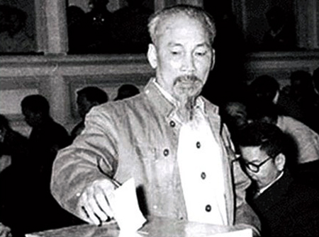 ![]() El presidente Ho Chi Minh es el primer ciudadano que vota por el primer Parlamento de la República Democrática de Vietnam