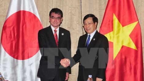 (VOVWORLD) - Al margen de la Semana de alto nivel del APEC en Da Nang, el vice primer ministro y canciller vietnamita, Pham Binh Minh, sostuvo este 7 de noviembre reuniones por separado con el ministro de Relaciones Exteriores de Japón, Taro Kono, y el director del Foro Económico Mundial (WEF, por sus siglas en inglés), Philipp Roesler.