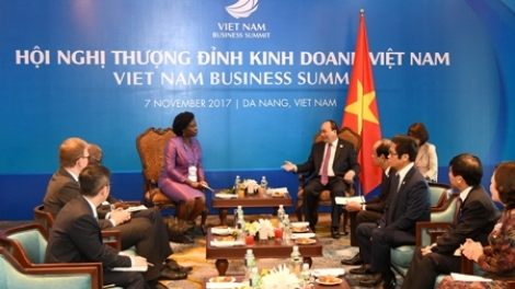 (VOVWORLD) - Al margen de la Cumbre de Negocios de Vietnam en el marco de la Semana de la alto nivel del APEC 2017, el primer ministro de Vietnam, Nguyen Xuan Phuc, recibió este 7 de noviembre en Da Nang a Victoria Kwakwa, vicepresidenta del Banco Mundial (BM) para Asia del Este y Pacífico, y a Philipp Rosler, director general del Foro Económico Mundial (WEF, por sus siglas en inglés).