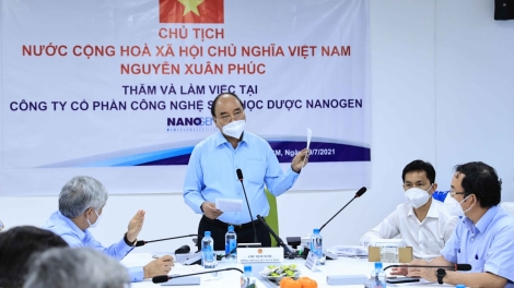 (VOVWORLD) - El presidente Nguyen Xuan Phuc visitó el jueves la compañía farmacéutica Nanogen, que se encuentra en proceso de probar la vacuna anticovid-19 NANOCOVAX.