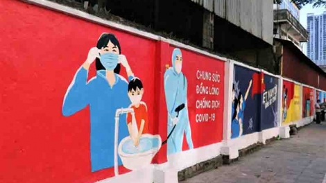 Hanói promueve la prevención y el control del covid-19 con murales de propaganda