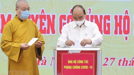 (VOVWORLD) - El Comité Central del Frente de la Patria de Vietnam celebró la ceremonia inaugural de la temporada de donaciones para la prevención y el control del covid-19, con la presencia del presidente del país, Nguyen Xuan Phuc, quien pidió a todas las empresas, organizaciones y benefactores que actúen juntos y sean responsables del país y el pueblo en este momento desafiante.