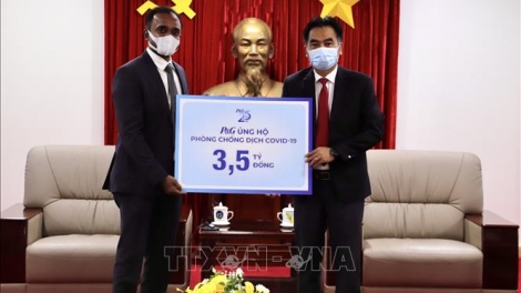 (VOVWORLD) - La provincia de Binh Duong recibió el 24 de mayo 3 mil millones de dongs en efectivo y una variedad de productos valorados en 500 millones de dongs por parte de la empresa Procter & Gamble Vietnam con inversión de Singapur, para respaldar la prevención de la pandemia de covid-19 en la localidad.