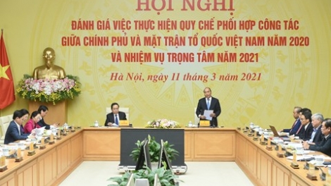(VOVWORLD) - El liderazgo del Partido Comunista y la coordinación eficiente entre el Gobierno y el Frente de la Patria de Vietnam han contribuido a llevar al país a superar las dificultades y alcanzar logros importantes en 2020 y en los últimos años, dijo este jueves el primer ministro Nguyen Xuan Phuc en una conferencia de balance de la implementación del mecanismo de trabajo conjunto entre ambas partes.