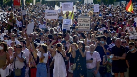 Miles de personas manifiestan en Madrid contra medidas de confinamiento