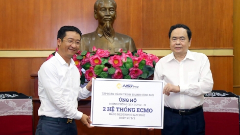 (VOVWORLD) - El presidente del Comité Central del Frente de la Patria de Vietnam, Tran Thanh Man, recibió el 27 de agosto dos sistemas ECMO, por valor de más de 300 mil dólares, donados por el grupo Thanh Cong New Journey (Grupo NSJ) para apoyar la lucha contra la epidemia del covid-19 en el país.