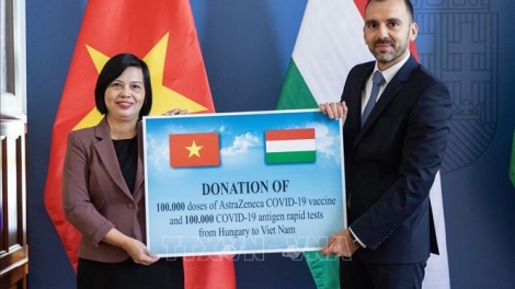 (VOVWORLD) - La embajadora vietnamita en Hungría, Nguyen Thi Bich Thao, recibió una donación de 100 mil dosis de la vacuna AstraZeneca y 100 mil kits de pruebas rápidas de antígenos del gobierno húngaro para ayudar a Vietnam en la lucha contra el covid-19.
