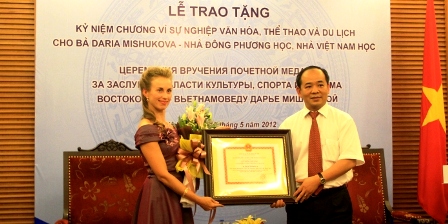 Daria Mishukova nació en l979 y pertenece a la tercera generación de vietnamólogos en Rusia. Para concluir la obra durante 3 meses, ella dedicó más de l0 años al estudio del idioma vietnamita, la investigación sobre este país indochino, la preparación de una tesis doctoral y recorridos de experiencias prácticas a través de numerosas provincias y ciudades vietnamitas. Por ello, su obra “Vietnam, país de los hijos de Dragón y nietos de Hadas” es producto de una investigación primorosa y profunda, de una científica que logra como extranjera una valoración muy precisa sobre la realidad vietnamita. El profesor Ha Minh Duc estimó: “La obra es la labor de una joven y culta investigadora. Ella tiene un alma joven y se muestra sensible con la literatura y el arte y la gente vietnamitas. Esto es lo que ha logrado Daria Mishukova.”