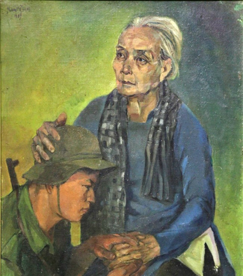 ![]() Obra pictórica "Combatiente del Ejército Popular de Vietnam y su madre"