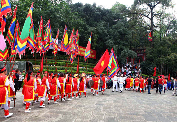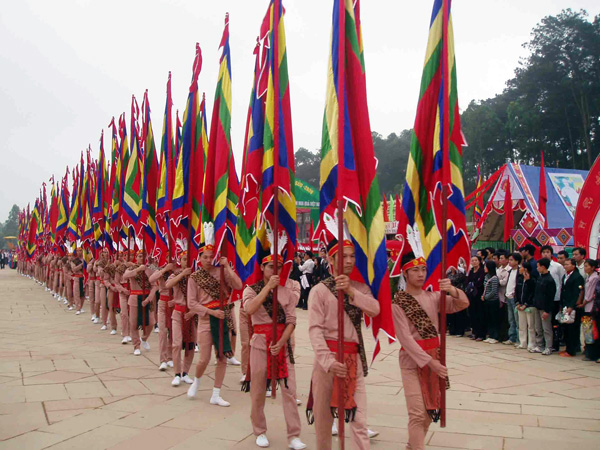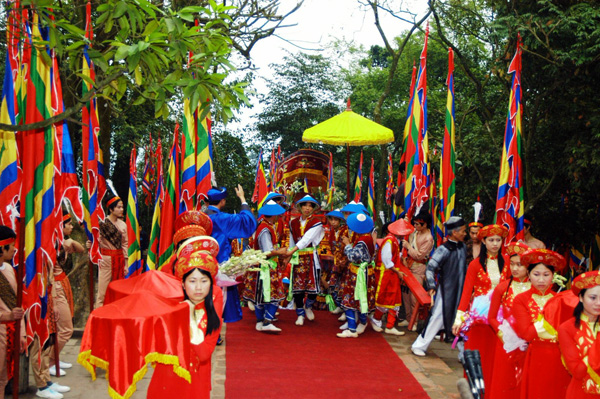 La Fiesta del Templo de los Reyes Hung, una celebración anual de culto a los fundadores del país, es una conmemoración muy arraigada en Vietnam. En este día festivo, la ceremonia se celebra solemnemente con la asistencia de altos dirigentes de la nación, junto a una gran afluencia de visitantes. Entre los ritos principales, resalta la ofrenda de inciensos en Đền Thượng (santuario superior) en la montaña de Nghia Linh. Este año, la parte ceremonial fue más especial, pues al cierre del rito en el templo principal en la provincia de Phu Tho, los otros mil 417 santuarios de culto a dichos monarcas en todo el territorio cumplieron simultáneamente el mismo procedimiento espiritual. En cuanto a las actividades que realizan las masas populares, se autorizan a 41 aldeas llevar a cabo la procesión del palanquín desde el poblado hasta el Templo de los Reyes Hung. Las sillas de manos son pintadas de resina, doradas y esculpidas meticulosamente. Después de la parte ceremonial, comienzan las actividades recreativas con juegos tradicionales como la lucha, columpio, “ném còn” (lanzamiento de una bola de tela), ajedrez humano en el cual las fichas son personas, y competiciones de tiro con ballesta, además de las interpretaciones artísticas de “hát xoan” y “hát ghẹo” (dos géneros del canto tradicional de Phu Tho).