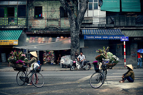 A través de cientos de años de historia la antigua capital imperial de Thang Long, hoy Hanoi es la tierra donde se concentraron muchos talentos y hombres destacados de todas partes del país. Ellos fundaron gremios y barriadas profesionales y abrieron comercios. Los artesanos provenientes de aldeas rurales no solo trajeron sus oficios, sino también técnicas de producción, dando lugar a las calles cuyos nombres se iniciaban con la palabra “Hang”. Aunque se han registrado numerosas transformaciones, todavía hoy en muchos barrios mantienen vivas sus viejas dedicaciones como ocurre en Hang Ma (Calle de artículos votivos), Hang Thiec (Calle del estaño) donde se fabrican artículos de ese material o aluminio y Hang Bac (Calle de la Plata) caracterizada por la orfebrería entre otras artesanías. Lo especial consiste en que aunque prosperaban en la capital real los artesanos de antaño y sus descendientes recuerden el origen de su oficio. Numerosos gremios profesionales construyeron templos y casas comunales para rendir culto a los forjadores de esos creativos quehaceres en la ciudadela de Thang Long para que sus hijos y nietos nunca olviden la tierra natal y agradezcan a los antecesores que les legaron los oficios. Decenas de reliquias lo evocan en el casco de Hanoi. En la esquina de Yen Thái en la calle de Hang Gai (Calle del Cáñamo) se encuentra el templo “Tú Đình Thị” en el cual se venera al creador del bordado Le Cong Hanh, de la aldea Quat Dong, distrito de Thuong Tin en las afueras de Hanoi. La señora Do Thi Ngát quien cuida este lugar de culto dijo: “Tú significa bordado, Đình significa lugar de veneración y Thị significa mercado. Antaño, los artesanos de Quat Dong, Thuong Tín llegaron a este lugar para comerciar, y causa de r ello erigieron esta especie de templo para adorar al pionero del oficio. Los comerciantes de Hang Trong (Calle de Tambores) acudieron aquí para comprar productos y venderlos después en su barrio. Anteriormente los bordadores rindieron culto al Padre de profesión en Tú Dinh Thi, mientras en la tierra natal se hizo lo mismo”.
