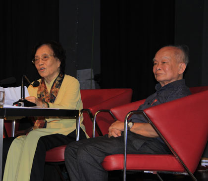 La ex vicepresidenta de la República,Nguyen Thi Binh y el escritor