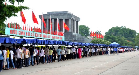 Bajo el suave sol otoñal de Hanoi, una silenciosa fila de personas que parece infinita espera su visita al Mausoleo de Ho Chi Minh para rendir tributo al querido y admirado líder. En este lugar, reina la serena solemnidad. Mientras afuera, un ambiente alegre por el Día Nacional impera en cada rincón de la capital Hanoi, como en todas las localidades de Vietnam. La señora Hoang Nhu, de 83 años de edad, junto a sus vecinos en el barrio de Dich Vong, distrito capitalino de Cau Giay, limpian y ordenan su zona poblacional en saludo al Día de la Independencia. En este ambiente, reviven en ella y en las personas de su misma edad, imágenes del querido Tío Ho.“El Tío Ho prodigaba un profundo amor a la nación. En vida, era un hombre muy sencillo y cercano al pueblo. Prestaba atención a todos los estratos de la sociedad, niños, estudiantes, jóvenes, hasta las personas de avanzada edad, los pobres y los campesinos… Nunca pensaba en sí mismo, sino en todo el pueblo, en el destino de la nación y de toda la Humanidad. Su vida tan sencilla, de tan pocos recursos materiales, como puede apreciarse en su residencia y oficina de trabajo.”