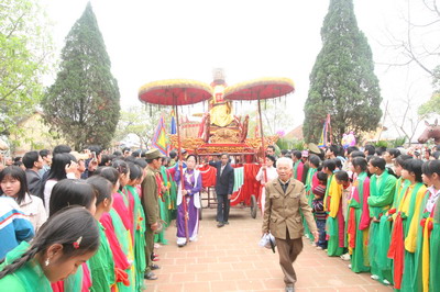 (VOVworld) - Vietnam es un país de numerosas fiestas y la primavera es la época en que comienzan. Según las costumbres y tradiciones, desde tiempos remotos la primavera es la ocasión en que la gente pide la protección de los santos y espíritus. Existe en la zona de Khoái Chau, en la provincia de Hung Yen, una historia legendaria vinculada con uno de “los cuatro Santos inmortales”. El folclore vietnamita la conoce como la fiesta de Chu Dong Tu - Tien Dung, considerada como la del amor imperecedero. A través del tiempo, este festejo aún mantiene la pureza de la cultura popular.