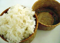 Arroz glutinoso cocidos es una comida típica de los Thai negros