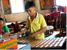 Aunque solo ha estudiado música un año, Duong es el mejor del grupo. Sabe tocar todos los instrumentos pentatónicos. Este concierto incluye instrumentos hechos de 5 materiales: madera, bronce, hierro, piel y viento. El tambor “sam pho” tiene 2 caras tapadas con piel de buey y el instrumentista se golpea con las manos, creando sonido. El Ronek está compuesto de 26 piezas de madera o bambú en forma rectangular unidas y el intérprete utiliza dos mazos de madera para golpearlas suavemente. El Ronek de cesta produce un tono bajo parecido al Ronek, pero solo tiene l6 piezas de bambú. El Chling de los jemeres se parece al platillo de los Kinh (mayoritarios en Vietnam). El Sro lay es un clarinete de caña brava con una caja de resonancia de madera preciosa y el conjunto de Pun Piet está integrado por l6 gongs pequeños sostenidos por un armazón de mimbre semicirular y se toca con dos bolillos envueltos en piel. Entre estos instrumentos, Roneck es el principal que guía las partes de un concierto.