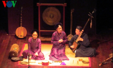 (VOVoworld) - En la noche musical “Sonidos de la flauta y la seda”, cada sonoridad, melodía y tiempo de distintos tipos de música tradicional fueron representados por los mejores artistas de la composición popular, creando un impresionante flujo resonante que recorre las tres regiones Norte-Centro-Sur. Fue un encuentro musical entre las personas más devotas a la creación tradicional en todas partes del país y también en el exterior, tales como los famosos artistas Huong Thanh, Dang Cong Hung, Doan Thanh Binh, Xuan Hoach y Ngo Thanh Hoai, entre otros, que transmitieron a los oyentes la sutileza y singularidad de este género artístico tradicional.