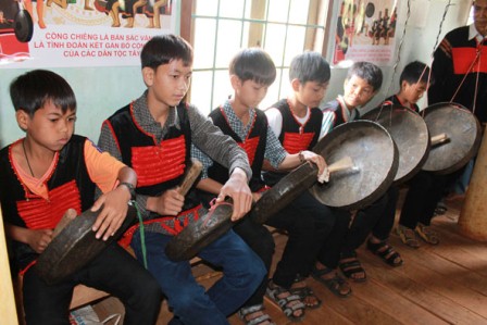 Aún falta un mes después del Tet hasta el “Día festivo de la Cultura y Deporte” organizado por el gobierno local del barrio pero los integrantes del grupo de Gongs en la comuna Pu Hue, barrio Ea Ktur, distrito Chu Quynh, provincia Dac Lac, están practicando por las noches Se reúnen en la casa comunal para trabajar en las partituras aplicadas al Gong, recientemente estudiadas de manera tan apasionada y devota, que el sonido suena en todas partes. Y Sun E´ Ban, un miembro del grupo, dice: “Somos siete alumnos que llevamos apenas dos meses aprendiendo, pero vamos a un ritmo rápido. Uno toca y los demás le siguen, así avanzamos, y hasta ahora nos han invitado a tres presentaciones, una en el distrito y dos en la comuna de Drai Bhang”.