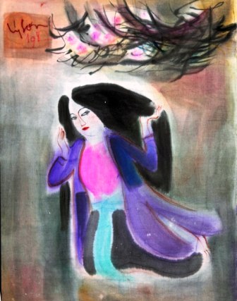 Están escuchando una grabación citada de la obra “Xuy Van gia dai” (Xuy Van, la loca) que cuenta de una muchacha llamada Xuy Van. Este trozo resalta sus sentimientos infelices, que de no ser correspondida en el amor, desea dar por acabada la relación matrimonial para perseguir un nuevo romance. Los actores de la obra son de la conocida compañía “Dong Kinh co nhac” (Música antigua de Dong Kinh). En ese sentido, la noche musical “To nu dan ca” tiene como fondo pinturas populares hechas en el papel “do” del pintor Ly Truc Son, las cuales están actualmente expuestas en el Centro Cultural Francés, Hanoi. Responsable de la decoración y el montaje del escenario, el mismo artista comenta que su manera de decorar el escenario tan particular y lleno de improvisación era como un valor añadido al programa y fue creado apenas un rato antes de que empezara el mismo. “Antes de pintar no tenía muchas ideas, sino que las mismas fueron creadas una tras otra en el momento. Esperé hasta que el telón de fondo fue montado para organizarlas, es como un método de actuación: cuando ocurre un acontecimiento, el actor lo representa en el escenario en el acto. El artista capaz de improvisar, lleva dentro el material y la habilidad, y cuando toca el instante concreto, lo demuestra todo.”