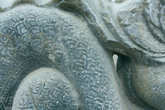 Detalles decorativos tallados en una escultura de piedra