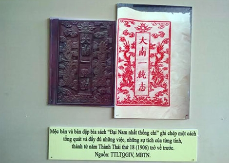 ![]() Una plancha xilográfica y la grabada de la portada de un libro de historia de la dinastía Nguyen, presentadas en la muestra