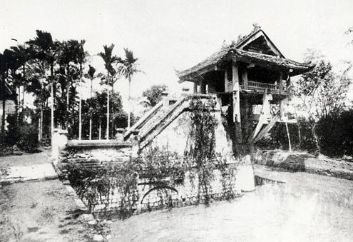 La pagoda del único pilar, fotografiada en 1939 y en 2010,