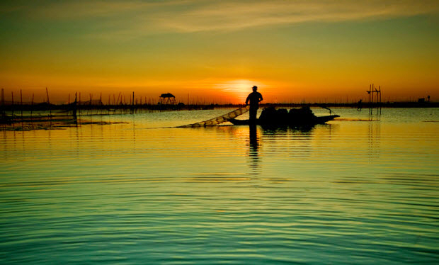 ![]() Pescadores en la ciénaga Tam Giang