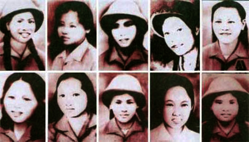 Este lugar se ligó a los sacrificios de las l0 jóvenes de choque que se convirtieron en leyenda en la resistencia antinorteamericana y en la historia de lucha por la independencia nacional. Las l0 jovencitas de l7 a 24 años de edad pertenecieron a la escuadra 4, compañía 2 de la Sección 55 de jóvenes de choque de la provincia de Ha Tinh con Vo Thi Tan como jefa. Por el día ellas evitaban los bombardeos de tapiz del enemigo y por la noche allanaban los cráteres de bombas para dar paso a los vehículos. En la mañana del 24 de julio de l968 recibieron la orden de allanar urgentemente los cráteres de bombas y una de éstas cayó en el lugar donde cumplían su tarea. Este sitio se ha convertido en zona de reliquias en memoria a las l0 jovencitas que sacrificaron su vida por la independencia nacional. Tran Dinh Uoc, jefe de la Comisión de administración de este vestigio dio a conocer: “La Comisión de administración presta mucha atención al contingente propagandistas para que los visitantes comprendan el pasado glorioso de la guerra antiyanqui, en especial en el frente de comunicación y transportación, así como la guerra popular. Julio es el mes culminante en la encrucijada de Dong Loc. La Comisión de administración recibe diariamente a unos 3 mil visitantes, en especial en este mes cerca de 40 o 50 mil viajeros ofrendan inciensos a las mártires”.