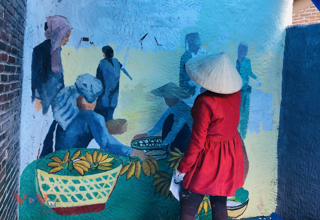 Un mural sobre la jornada de mercado campestre pintado en un espacio de la zona turística Hieu’s Cottage. |